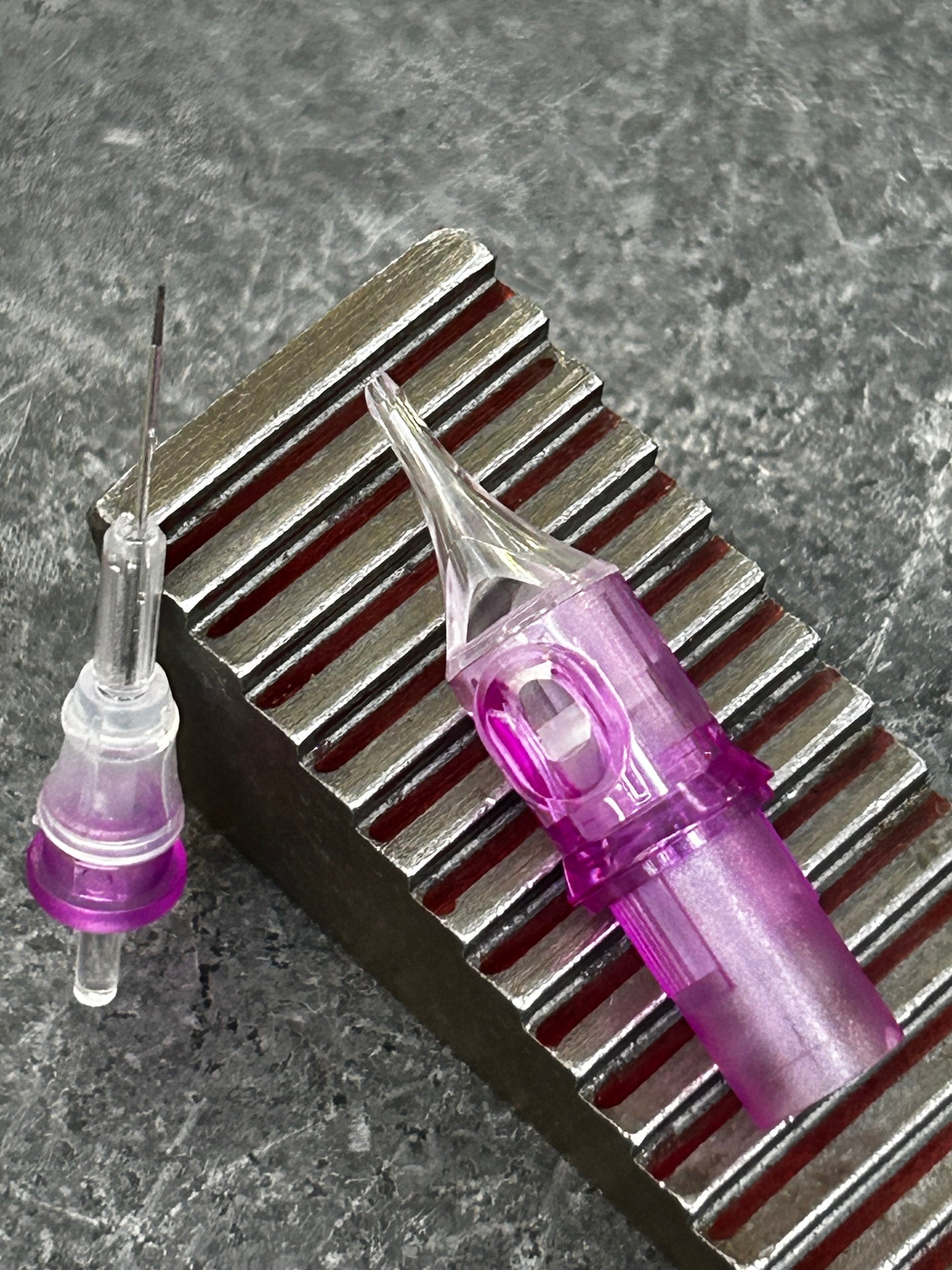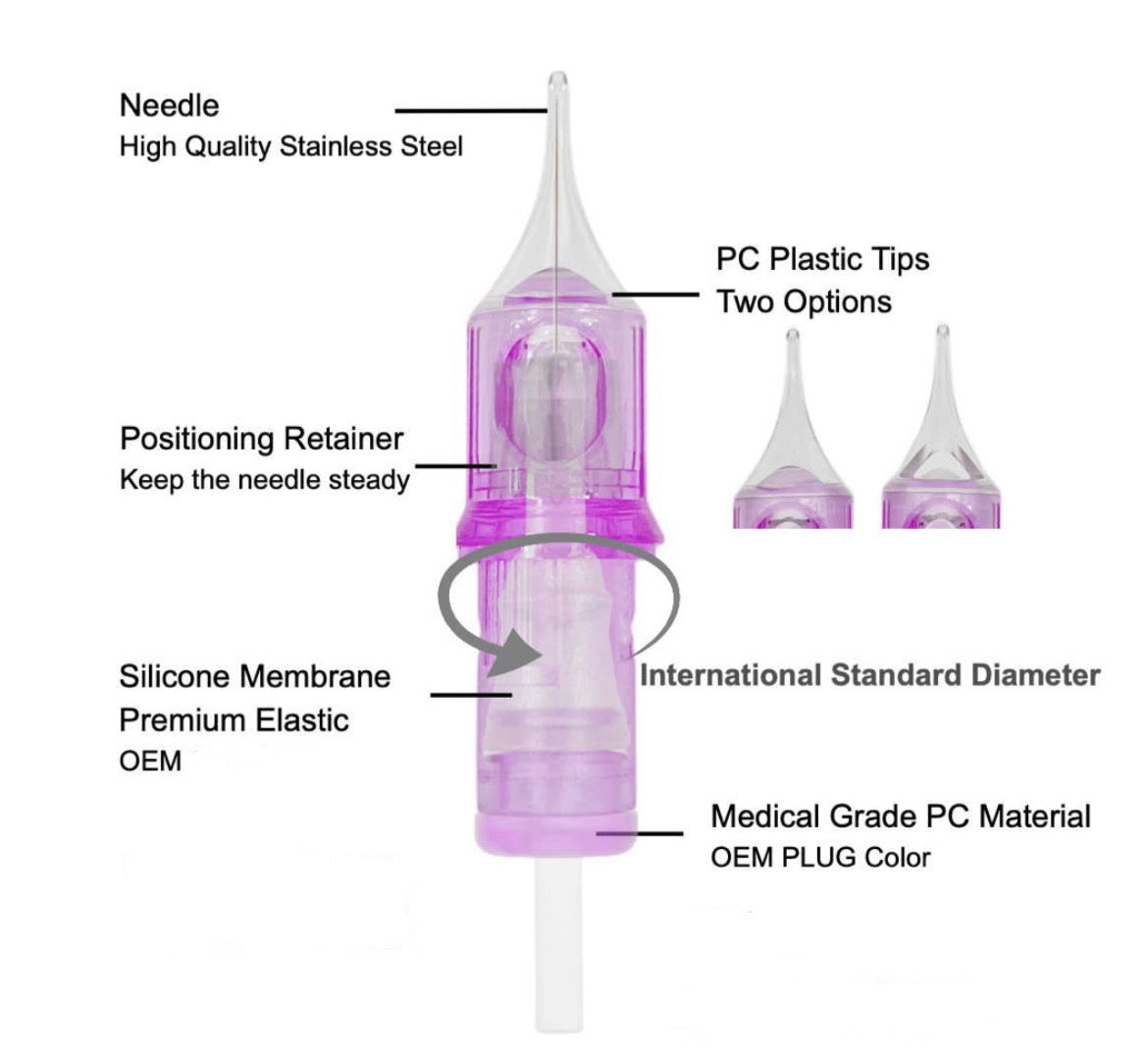- Diseño Innovador: Equipada con dos respiraderos de punta redonda, esta aguja promueve un flujo de tinta superior, permitiendo una aplicación más suave y uniforme.